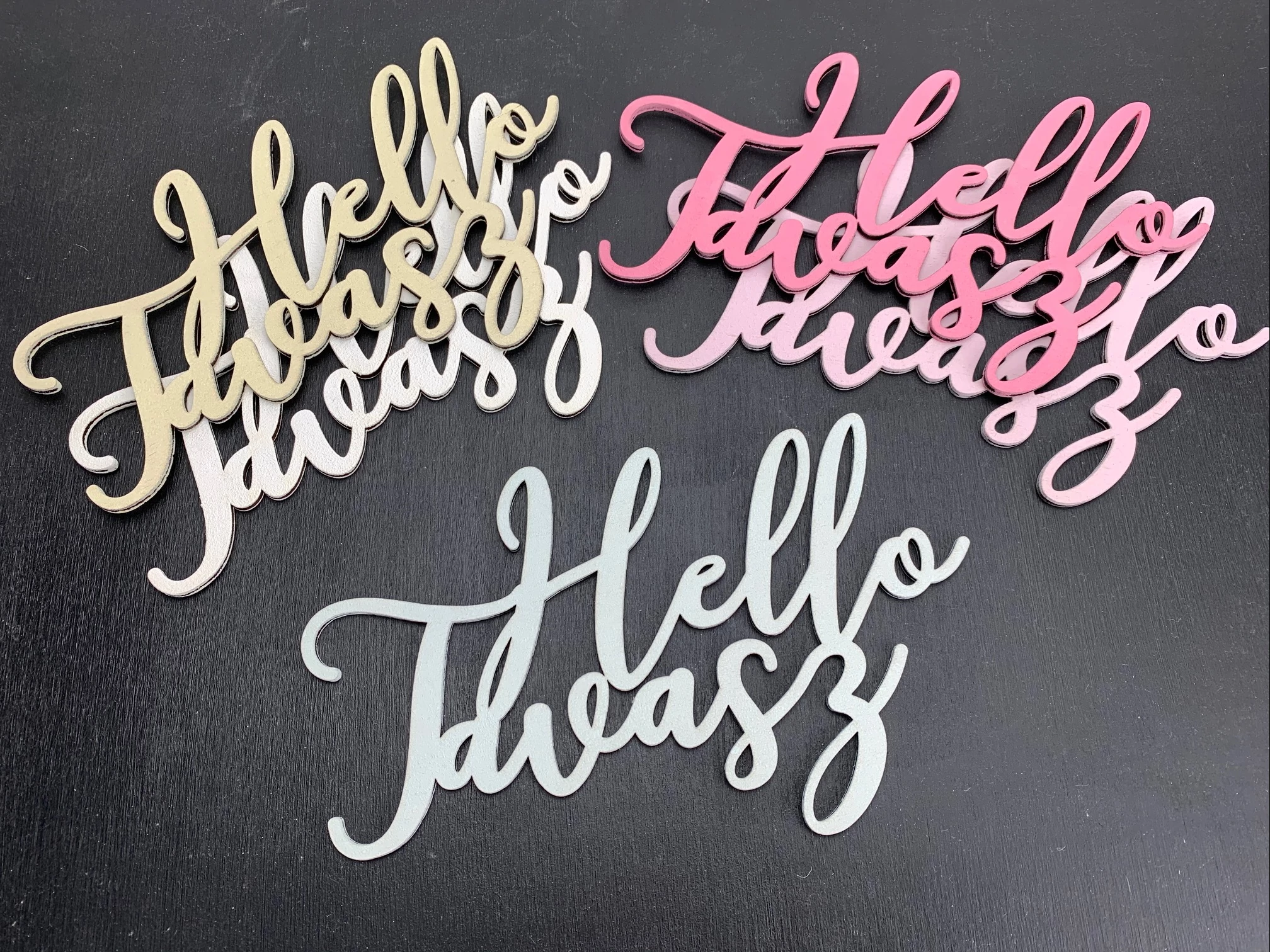 "Hello Tavasz" írott felirat koszorúra 12x19cm - rózsaszín